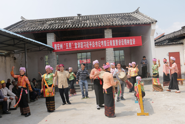 宣讲会结束,思老师还与村民们跳起了傣族的嘎秧舞,整个傣寨沉浸在一片欢乐的气氛中。