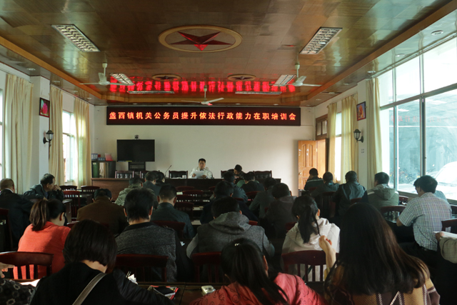 为提升盏西镇机关公务员依法行政能力,3月30日下午,盏西镇开展了提升依法行政能力在职培训会,盏西镇镇长陈以兴授课。盏西镇25名机关公务员参加了培训会。
