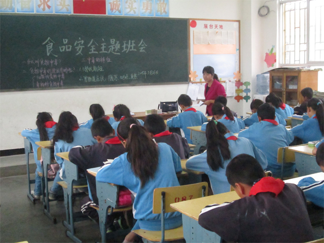 在班会中通过集体讨论、讲述教育故事等丰富多彩的形式使同学们了解到食品安全的重要性,鼓励同学们养成良好的饮食习惯。并寻找同学们身边的食品安全事故典型事例,通过集体分析与讨论,使同学深刻认识到乱吃零食,不讲究饮食卫生的害处。同时,会议中还穿插着介绍了一些出现食品安全事故时的急救措施。