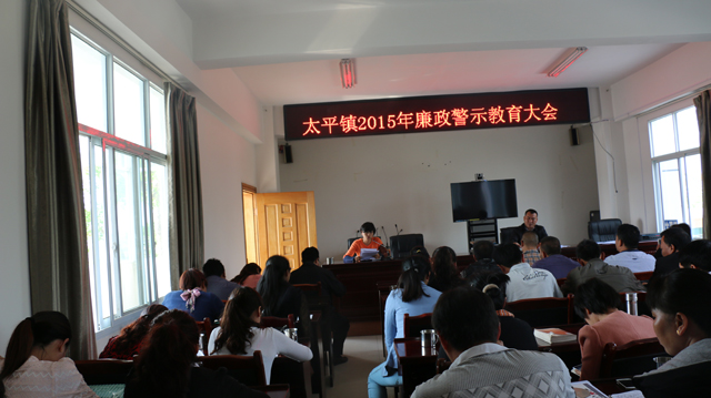 3月30日上午,太平镇组织召开镇村干部廉政警示教育大会,会议由该镇纪委书记郑秋霞同志主持,镇全体机关干部、各站所及村干部80余人参加了会议。