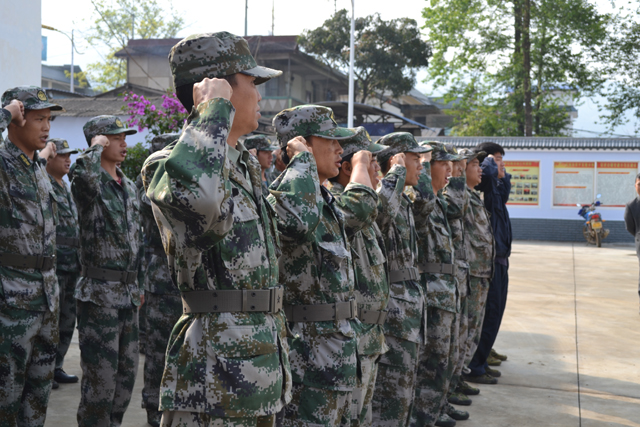 4月1日上午,芒章乡25名应急分队民兵齐聚该乡人民政府大院,接受县人武部组织的民兵整组点验。县人武部政委龙潜、芒章乡乡长刀汉威、武装部长廖文富等参加点验。