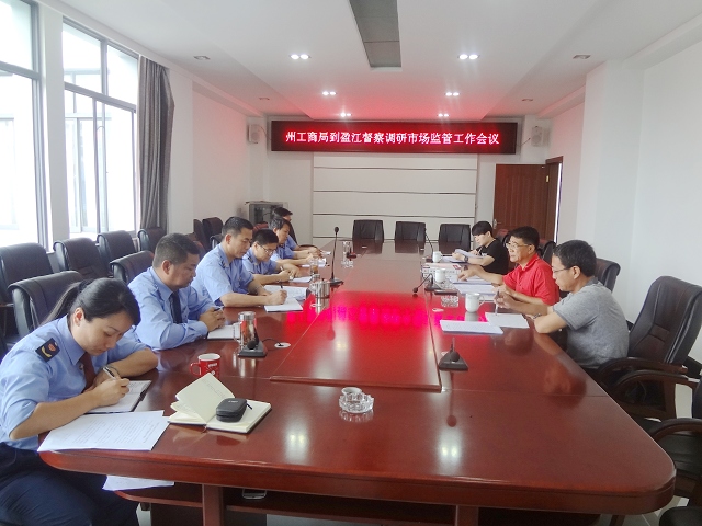 2015年4月22日,州工商局纪检组长胡宁带领市场科工作人员一行3人,到盈江对市场监管工作开展情况进行督察调研。此次督察采取听取汇报、查看痕迹资料、询问有关工作要点的方式,全面了解掌握各项市场监管工作进展情况。