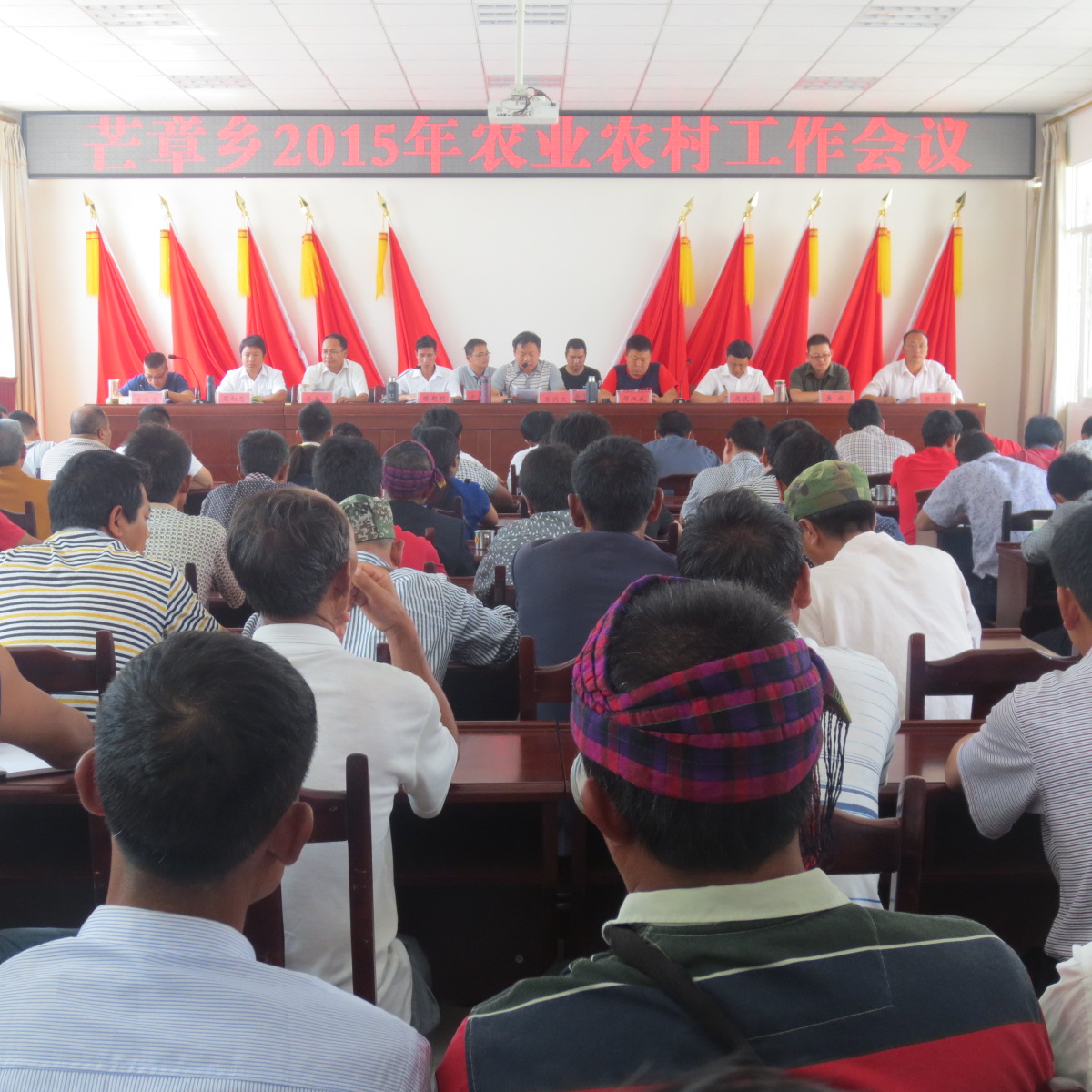 5月14日芒章乡组织召开了2015年度农业农村工作会议。该乡党政领导班子、干部职工、新农村工作队驻芒章乡指导员、各村“三委”干部、村民小组长和农业农村工作中表现突出的集体和个人160余人参加了会议。