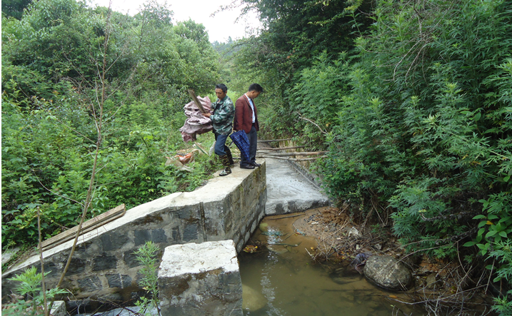 昔马镇新田沟道班路下泄洪口下1米处,由于遭受去年洪水冲刷形成悬空,悬空面积5立方,大量灌溉水源外泄到沟外,直接影响到新田沟下游农业灌溉用水,在广泛征求各村群众意见后,采取政府指导、群众投工投劳的方式对破损沟渠进行修复。