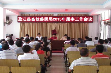为进一步做好定点屠宰监管工作,切实保障广大人民群众肉食品消费安全和身体健康。5月21日,县畜牧兽医局组织召开2015年屠宰工作会,全县15个乡(镇)畜牧兽医站、13个生猪定点屠宰场、1个大牲畜定点屠宰场负责人和屠商代表共66人参加会议。