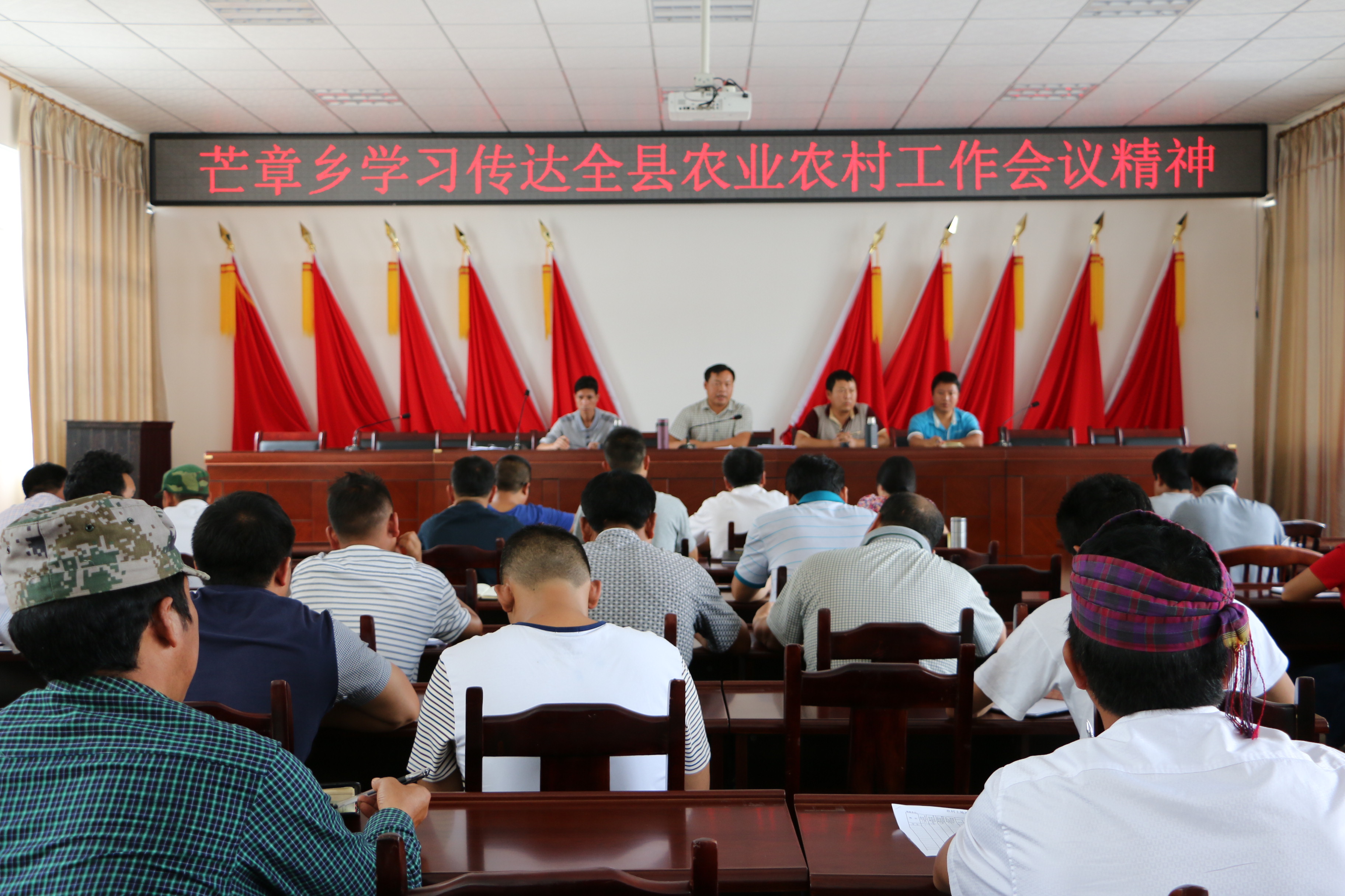 6月8日下午,芒章乡召开全体干部职工会议,认真传达学习盈江县2015年全县农业农村工作会议精神。机关全体领导干部、村三委干部共50余人参加了学习传达会。并对该乡当前及下步农业农村工作提出了明确要求。