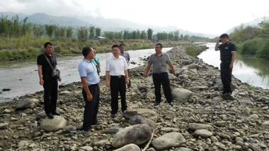 杨书记一行首先到南底河一号闸坝头取水口检查群众反映取水灌溉困难的问题,接着又到了南底河堤防、椿头塘堤防、三号沟、东大沟等进行实地查看,并详细了解了2014年汛期以来的雨量数据情况、预警短信发布情况等。