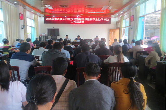 会上,盏西镇镇长陈以兴宣读了《2015年盏西镇人口较少民族综合保险和学生助学工作实施方案》,详细讲解了保险政策、盏西镇工作部署各阶段内容及保障措施。并将工作实施方案印发给了各村委会及相关单位。