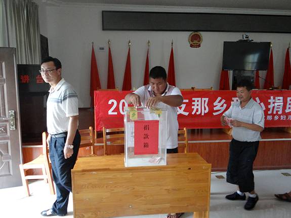6月15日,支那乡举行爱心捐助王根泽活动,募捐活动分别在支那乡政府和支那乡中学举行,在募捐活动开始前,由组织募捐活动的支那乡团委、妇儿工委宣读了捐助活动倡议书,为王根泽爱心捐助活动拉开了序幕,让更多人了解到募捐对象的基本情况和现在急需医疗费用进行治疗。在倡议书宣读结束后,参加捐助活动的人员纷纷慷慨解囊伸出援助之手为王根泽献上自己的一份爱心,捐助活动现场人们充分发挥“一方有难,八方支援”的精神为身患重病的王根泽贡献自己的一份力量。活动中,支那乡全体干部职工、乡直各站所、各村、全体中学师生、卫生院积极参加捐款活动,捐助年龄不论大小,捐款金额不论多少都充分显示了人们对王根泽的关心、爱护,对其身体尽快康复的热切期盼。最后捐款工作人员在现场对捐款金额进行了清点,并将善款交到王根泽亲属手中同时将全体捐款人员的美好祝愿送给王根泽及其家属。