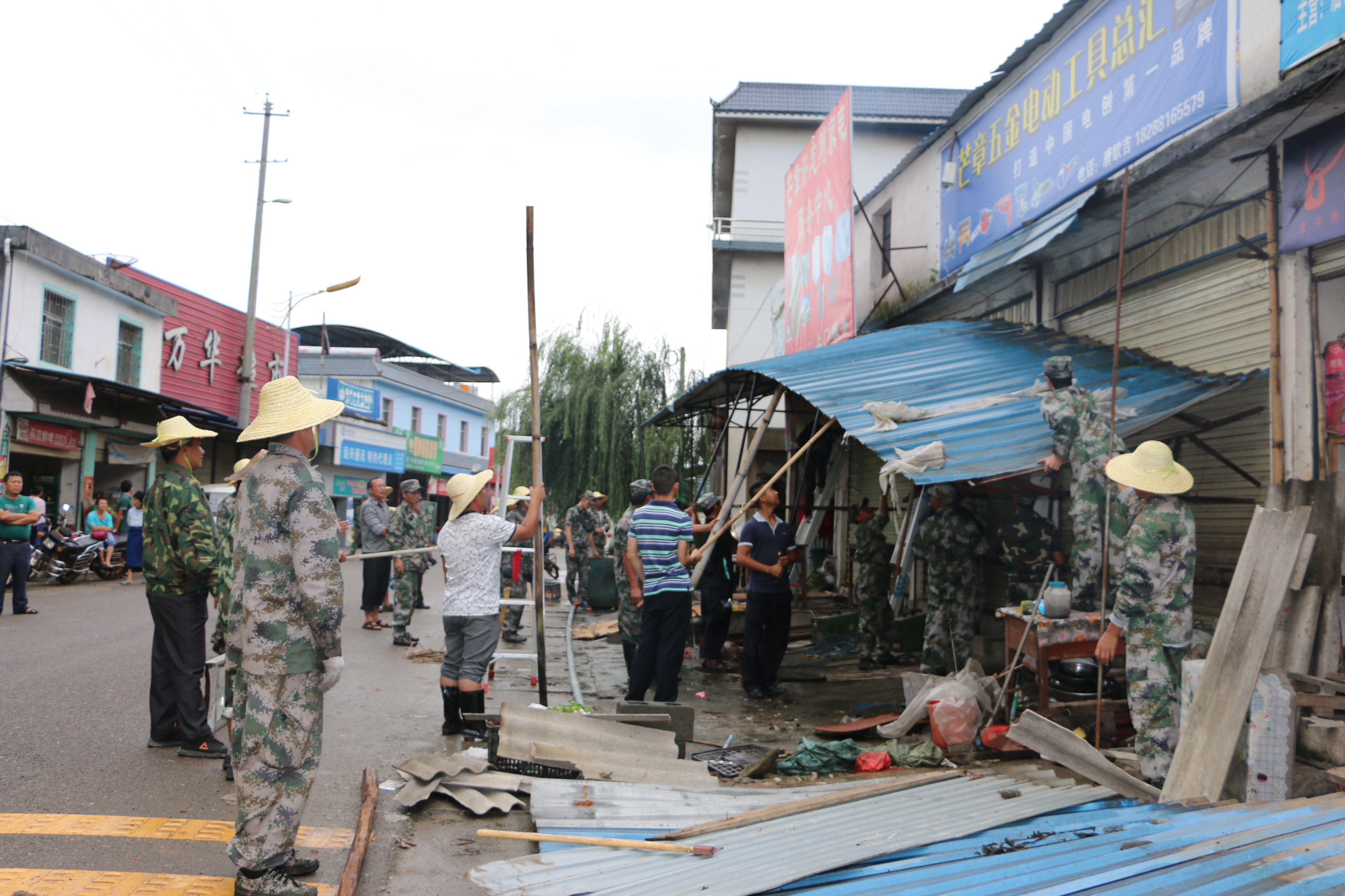 7月30日—31日,芒章乡组织基干民兵共60余人,专项行动清理拆除街道两侧私搭乱建、违章建筑,给行人和车辆重新开通了安全宽敞通道。