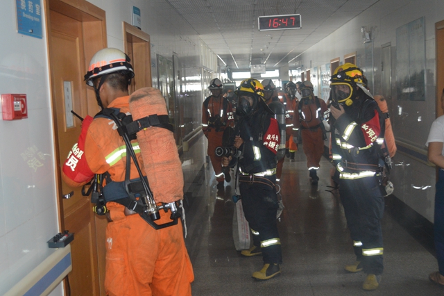 下午四点三十分,当总指挥瞿炳生院长的哨声响起,灭火应急演练相继拉开了序幕。只见住院部六楼换药室内浓烟滚滚,一患者在窗口双臂挥舞大声疾呼:“着火了,快来人呀!”。在拨打“119”呼救电话后,四辆火红的消防车一路疾驰而来,随着战斗的展开,消防员手持各类灭火救援器材冲上六楼,消防云梯缓缓升起直指着火层,经过消防战士的英勇奋战,大火被彻底扑灭。同时期,病房内的所有病人已在医务人员有条不紊的组织下,迅速由安全通道撤离到安全区,并由医疗救护组对伤者进行急救。演练结束后,该院还邀请消防中队的装备技师为医护人员讲解基础灭火设施的使用方法和注意事项,让医务人员掌握了更多的消防常识,懂得了基本的逃生自救技能。