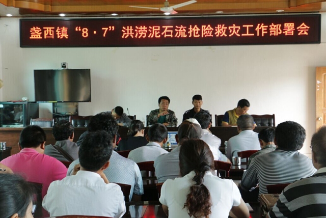 2015年8月10日,盏西镇召开关于“8•7”洪涝泥石流抢险救灾工作部署会议,会议由党委副书记郗承磊主持,全镇领导班子、干部职工、各站所负责人、各村支书主任、各村地质灾害监测员80余人参加。