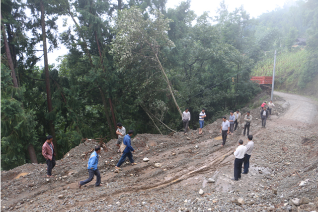 在“8•7”洪涝泥石流灾害中,受灾最重的关上村蛮冷自然村、松坡村勐弄自然村、象鼻岭下寨、帮朗村帮朗自然村民房、道路、水利设施、农田、经济作物等不同程度受到损毁,村内大量泥沙淤积。盏西镇党委政府采取有力措施,有效推进抢险救灾各项工作。一是加紧清淤排险。调动消防车帮助受灾群众进行家内清淤工作,受灾较重的关上村芒冷自然村、象鼻岭下寨、勐弄自然村的淤泥已基本清除完毕;二是加快疏通道路。由镇村干部、村民、公安干警、企业等组成施工力量,对被冲毁道路进行抢修,积极发动群众投工投劳,开展生产自救。三是保证人畜正常饮水。组织人员进行受损人畜饮水工程现场踏勘,及时疏通受损人畜饮水工程,确保正常人畜饮水供应工作;四是认真做好卫生防疫工作。县镇卫生部门及时深入受灾点开展疫情监测及防控工作,确保灾区无疫情发生;五是及时核查新灾情。及时组织人员对新发生的灾情进行排查、开展救灾。截至8月9日上午9时,共出动公安干警和武警官兵共154人次,民兵130人次,村社干部210人次,群众参与救灾11300人次,紧急转移疏散群众37户170人;共出动车辆32辆、挖机6台、铲车2台、拖拉机20辆,疏通桥涵3座,涵洞疏通8个,修复人畜饮水管道2件,修复灌溉沟渠20处,共挽回1200亩受灾农作物。目前,受灾群众思想稳定,生产生活有序恢复。