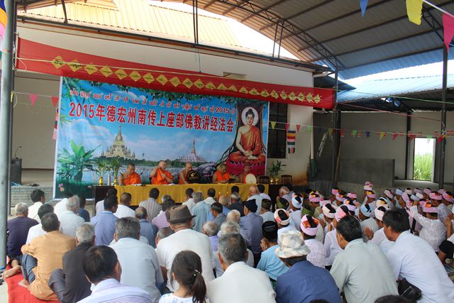 8月4日至6日,州民族宗教事务局龚明海副局长、州佛教协会、盈江县民宗局窦文芬副局长等一行人,深入盈江县芒章乡相帕佛寺;盏西镇会芒丙佛寺;新城乡大佛寺;平原镇奘相佛寺、小辛寨佛寺、弄璋镇弄轰佛寺开展2015年德宏州南传佛教讲经活动,州佛教协会讲经人员从持戒守法,做爱国公民、走中道,圆满人格、讲圆融,促进社会和谐、坚持正信,弘扬佛法四个方面进行讲经。