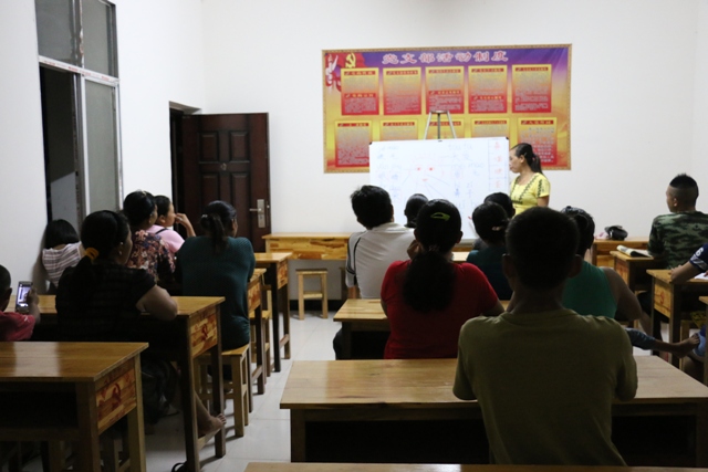 2015年7—8月份,那邦镇共举办汉语、景颇语、傈僳语等语言培训82场次245课时,培训学员250余人。其中,傈僳语培训班设在那邦镇辖区内火石沟教堂。培训期间,那邦镇副镇长余燕高多次走进教堂就党的方针和政策及宗教管理进行宣传,并引导学员积极学习和弘扬本民族文化,争做傈僳文化传承人。汉语和景颇语培训班设在那邦村民小组党员活动室。汉语培训班主要针对世居景颇族、傈僳族及缅籍通婚妇女。在党员活动室,学员们把附有党的性质和宗旨、入党程序和誓词、三会一课等内容的展板作为学习汉语的重要素材。培训学员表示:“双语”夜校班让我们能够读得懂报纸和期刊,及时了解各项支农惠农、社会保障等方面的民生政策,同时,党支部的各项章程已铭记于心;景颇语培训班主要针对在校小学生,培训通过学习景颇文字和歌曲、讲述景颇故事来增强孩子的民族语言表达能力和民族自豪感。民族语言培训进教堂、入基层,扩宽了党建文化阵地,激发了边境文化活力,增进民族团结。
