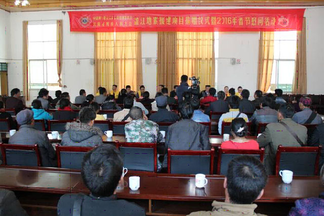 1月14日下午,云南省残联、中国狮子联会云南会员管理委员会到我县开展“5﹒24”、“5﹒30”地震援建项目捐赠仪式。省残联党组书记、理事长王兴宁,州人民政府副州长苏洪涛,州残联党组书记、理事长李发昌,中国狮子联会云南会员管理委员会服务项目主席、云岭服务队创队队长梁红梅,县人民政府副县长史劲勇等领导出席会议。全县30个残工委成员单位领导及卡场镇、勐弄乡、苏典乡残联工作分管领导、理事长和30户受援建残疾人代表共计70人参会。