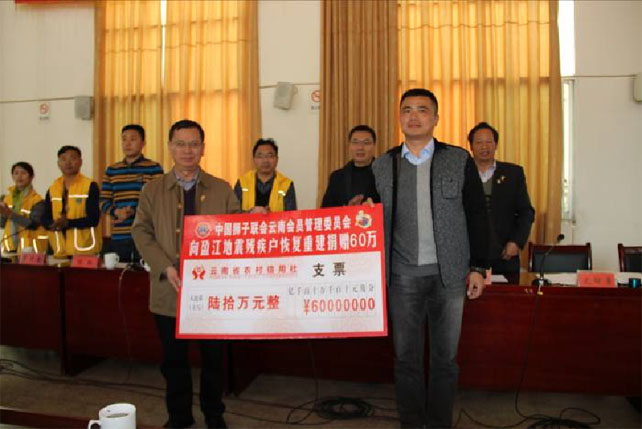 会上,梁红梅女士指出,此次援建项目的资金是在中国狮子会云南会员管理委员会全体会员“出心、出力、出钱、出席”的努力下筹集到的60万元善款,所得善款全部用于盈江地震重灾乡镇卡场镇、勐弄乡、苏典乡30户残疾户民房恢复重建项目。王兴宁代表中国狮子联会云南会员管理委员会将60万元人民币的捐赠支票交到副县长史劲勇同志的手中。王兴宁强调,云南狮友不仅用行动诠释了中国狮子联会“我们服务,我们快乐”的理念,同时也带动和影响越来越多的爱心人士加入到这支慈善服务队伍中,服务范围遍及助残、扶贫、救灾、助学和社区服务等领域,为云南的公益慈善事业和促进社会和谐贡献了力量,成为了云南公益慈善服务领域一支充满活力的生力军。