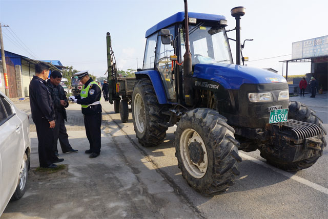 为切实做好春节期间农机安全监管工作,进一步落实农机安全生产各项措施,有效预防和减少农机事故,保障人民群众生命和财产安全,确保人民群众过好欢乐祥和的节日,盈江县农业局农机安全监理站,在县交警大队的密切配合和各乡镇党委政府的大力支持下,于2016年1月28日在弄璋镇展开了拖拉机违法载人,驾驶摩托车不戴安全帽,无证驾驶,酒后驾驶的专项整治行动。