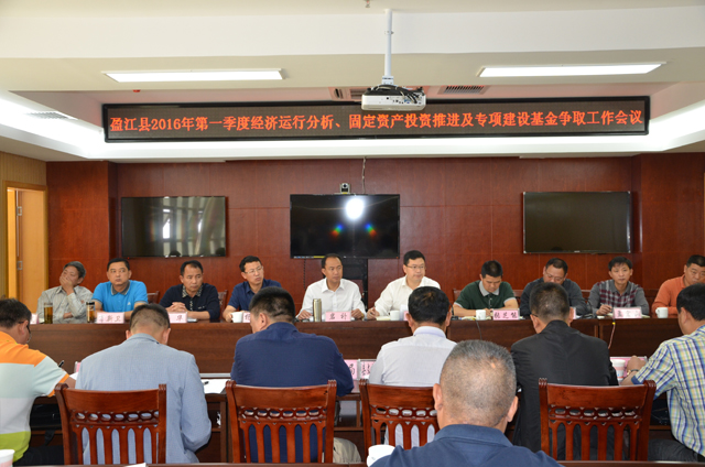 4月25日,盈江县召开2016年第一季度经济运行分析、固定资产投资推进及专项建设基金争取工作会议。县委副书记、县人民政府县长岩补,县政协主席杨荣凡,县委常委、县人民政府常务副县长张芝能,16个乡镇(农场),县直有关部门负责人参加会议。