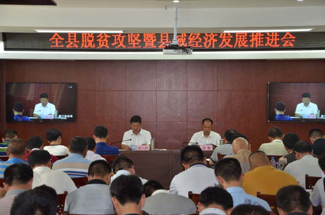 会议由县人民政府县长岩补主持,县委书记谢大鹏传达了全省脱贫攻坚暨县域经济发展推进会的会议精神并做了重要讲话。