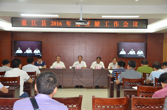 为进一步巩固、提升我县蔗糖产业发展, 9月7日,盈江县组织召开了2016年度蔗糖工作视频会议,岩补县长出席并作讲话,县委杨华副书记主持,县人大、县政府、县政协分管联系领导出席会议,县蔗糖产业发展领导小组成员单位、各植蔗乡镇及有关单位负责人80余人在主会场参加会议,各植蔗乡镇、盈江农场设分会场参加会议。