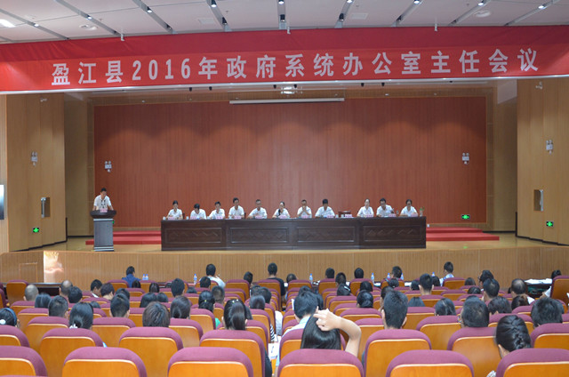 为进一步提高政府系统办公室工作效率,推动全县政府系统办公室工作再上新台阶, 9月18日,盈江县召开了政府系统办公室主任会议。县委办副主任、县国家保密局局长尹丽鸿,县人大办主任张宏云,县政府办主任思治荣,县政协办主任栋明辉出席并参加了会议。