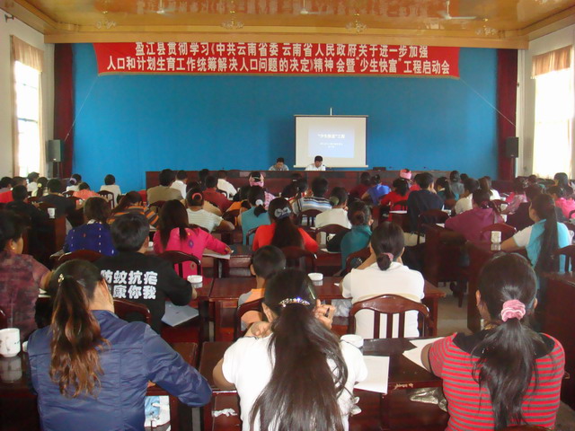 11月8日下午,盈江县召开了由15个乡镇分管计划生育工作的领导、计生专干、计生宣传员,县人口计生局全体干部职工共计170人参加的贯彻学习省委《决定》会议。
