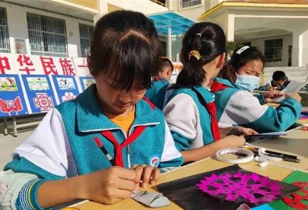 如一至四年级学生以该校自行编写的《本土民族文化》为教材,让学生们了解各民族的日常用语、风情习俗、饮食服饰文化等少数民族知识;五、六年级学生则以《民族常识》教材为主,让学生们了解中华民族的构成,掌握了解我国国情,在孩子们心中塑造起民族统一的国家意识和精神。各班级还充分利用主题班会活动、国旗下讲话、黑板报评比活动等载体,引导广大师生树立正确的国家观、民族观、历史观、文化观,不断增强对祖国、民族、文化的认同,让中华民族共同体意识扎根心灵深处。