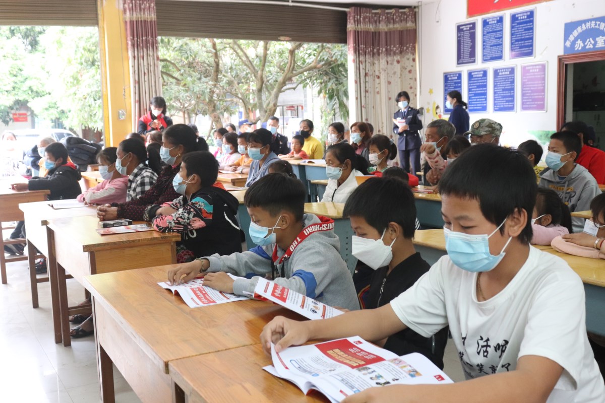 活动围绕消防安全和法律知识两大内容宣讲,在儿童中传播预防交通事故、火灾、溜冰溺水、烟花爆竹伤害、烫伤触电等意外伤害知识技能,灭火器的解说及实际操作,筑牢家庭防火安全防线。活动中盈江边境管理大队陈国翔、王玉鑫,消防救援大队张煌用少年儿童理解的语言和熟知的案例生动讲述了《中华人民共和国未成年人保护法》、《交通法》、消防火灾预防等法律知识,受益儿童、家长达60余人,发放学习用品30余份。有效在社会和家庭中宣传《中华人民共和国家庭教育促进法》,预防儿童交通事故、校园欺凌,提升儿童法治素养、安全素养。