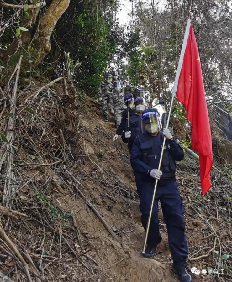 石梯是一个景颇族、傈僳族聚居的抵边村寨,位于离警务室10公里的山顶,当民辅警进村开展防诈骗、防疫情、爱鸟护鸟等宣传时,通晓景颇、傈僳族等民族语言的辅警金麻干就用少数民族语言和群众交流,让群众都听得懂。金麻干的脸庞和手臂晒得黝黑,他撸起裤腿,指着大腿上的7个“黑色印记”说,看,这是这一个月巡逻时蚂蟥、蚊虫、树枝留下的“军功章”。由于守边抗疫的战斗不止,原本答应妻子补拍婚纱照的计划,一直在延期。凌晨6点过后,天空微微泛白,确保无可疑情况,民辅警才安心回到警务室休息。
