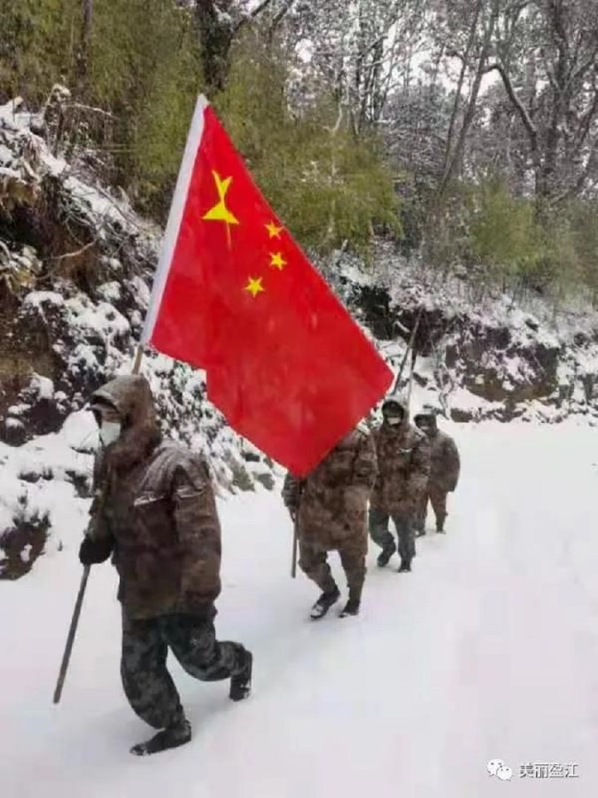 大年初一的晚上,苏典边境线上迎来今年第一场雪,寒风凛冽,气温骤降,冰冷刺骨,但丝毫不影响抗疫战士们守边的决心和毅力,他们不畏严寒,浴“雪”奋战,逆风雪前行,踏雪巡逻边境线,全天候坚守边境一线,在风雪中坚守,全力筑牢抗击疫情的第一道防线。由于天气太寒冷,守边战士们手脚冰冷,为了抵御寒冬,战士们在雪地里开展体能训练,时刻保持备战状态。“边境有我,请祖国放心!”铿锵有力的声音回荡在苏典边境线的每个角落,每一名民兵战士以冲锋在前的无畏姿态和果敢行动诠释初心使命。“身为一名人民子弟兵,坚守防控一线义无反顾。镇守边关,视死如归,只比奉献,勇往直前”民兵骨干胡定强笑着说道,这不仅是口号,是信心,是决心,更是每位戍边战士实实在在的行动。