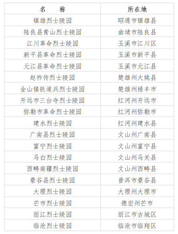 镇雄烈士陵园等19处烈士纪念设施