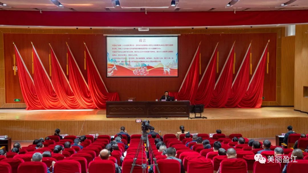 学习宣传贯彻党的二十大精神是当前和今后一个时期全县上下最重要的政治任务,要认真学习贯彻落实习近平总书记重要指示批示精神,严格按照党中央决策部署和省委、州委工作要求,在全面学习、全面把握、全面落实党的二十大精神上下功夫,持续掀起深入学习、宣传宣讲、贯彻落实党的二十大精神热潮,坚定不移用党的二十大精神统一思想、凝聚力量、鼓舞斗志,齐心协力、全力以赴推进盈江高质量跨越式发展,努力把盈江建设得更安全更美丽更富饶。