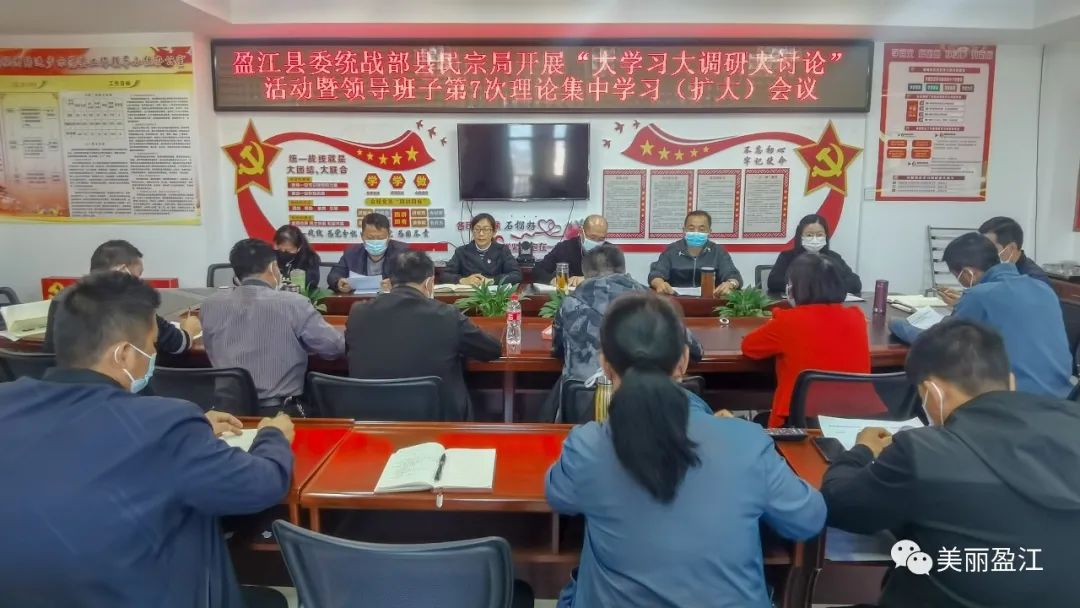 为深入学习贯彻党的二十大精神,团结带领广大党员干部奋力推进盈江经济社会发展破冰突围、赶超跨越,县委统战部县民宗局认真组织开展“学深悟透笃行党的二十大精神,奋力谱写新时代盈江社会主义现代化建设新篇章”大学习大调研大讨论活动。