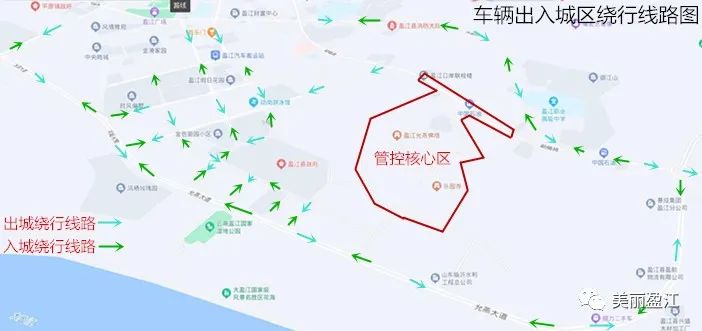 ▲车辆出入城区绕行线路图