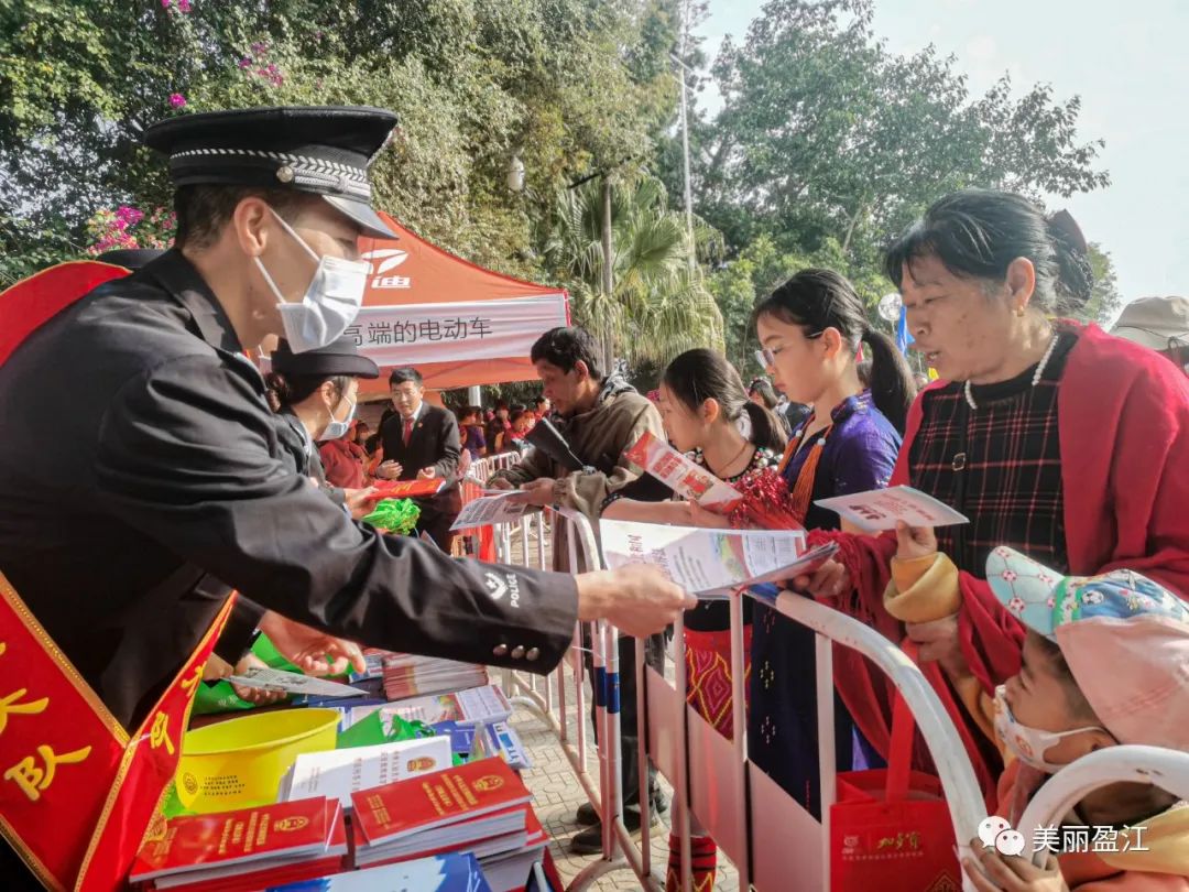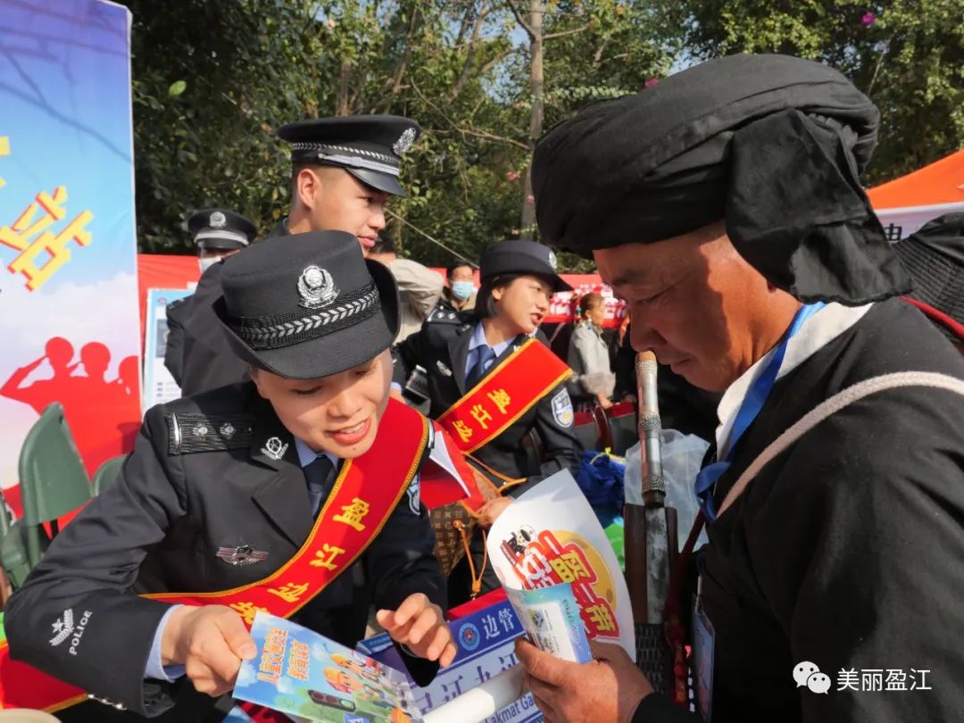 舞场一旁,醒目的“法治宣传固边防服务站”吸引了大批群众、游客。当天,德宏边境管理支队盈江边境管理大队联合司法局、法院、检察院等部门组成“法治宣传小分队”,开展以“法治宣传固边防”为主题的集中宣传活动,为现场参与盛会的群众提供法律咨询服务,为这场最炫民族风增添“法治风味”。