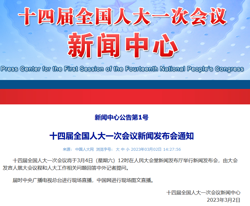 十四届全国人大一次会议新闻发布会通知