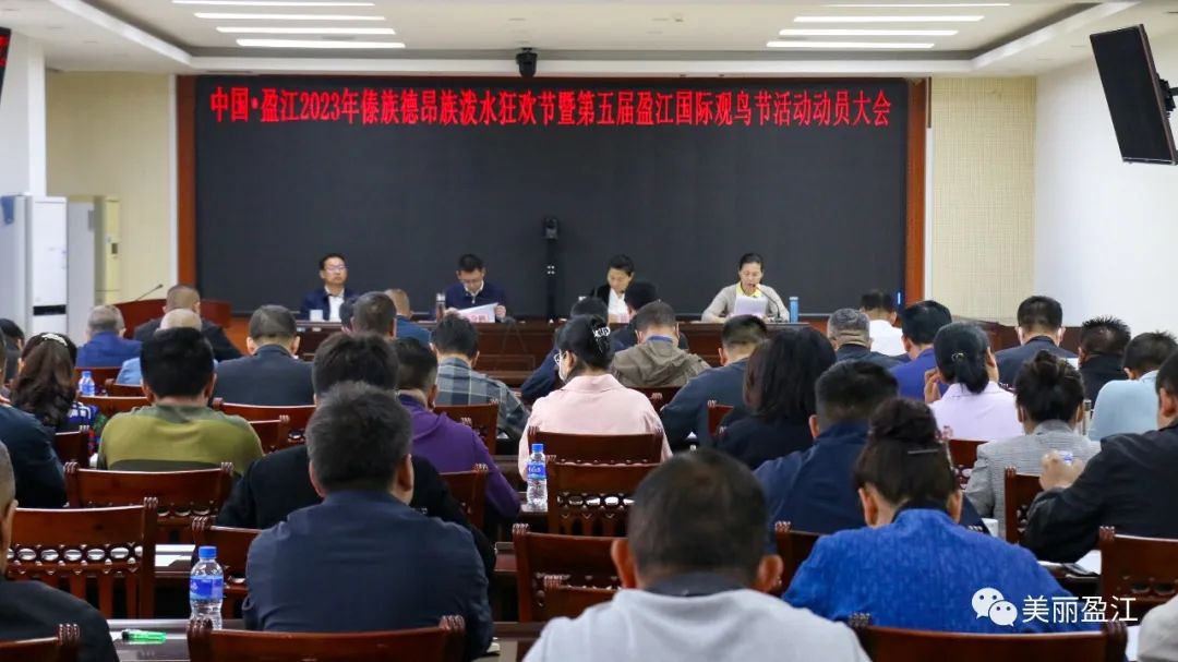 3月28日,盈江县召开2023年傣族德昂族泼水狂欢节暨第五届盈江国际观鸟节活动动员大会。