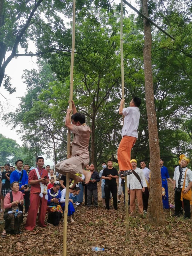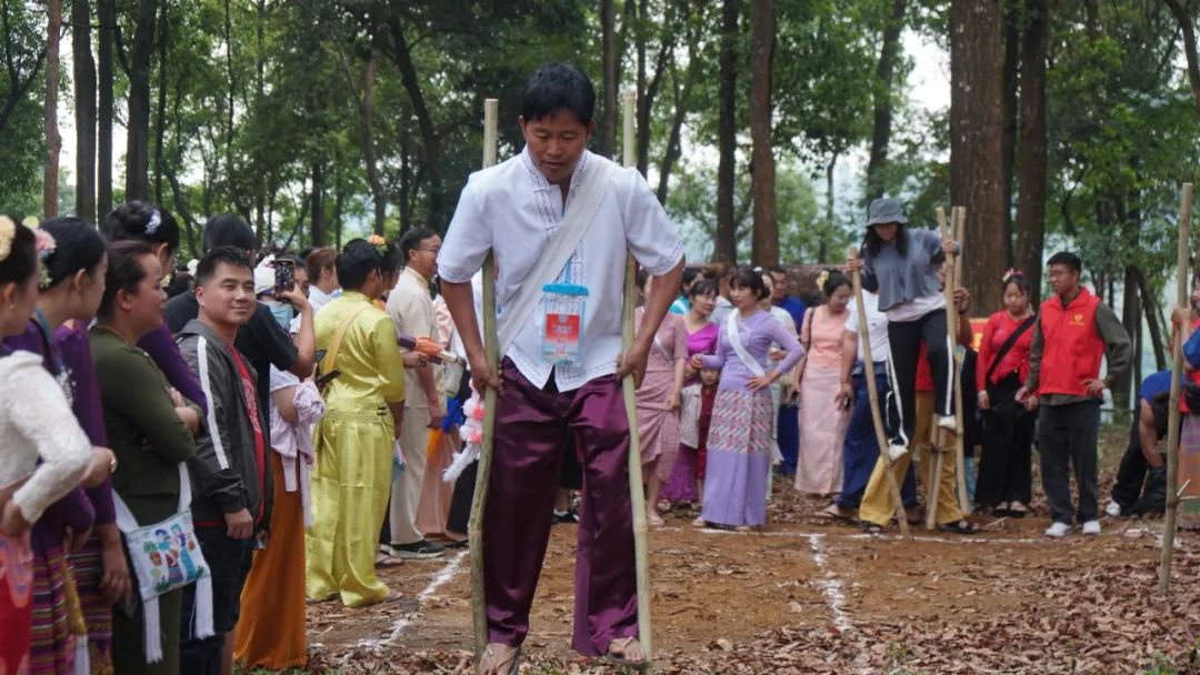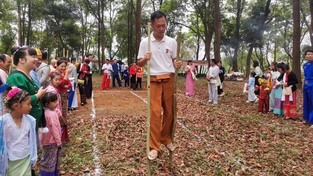 迎着和谐的晨风,伴着民族节庆狂欢优雅动听的民族音乐,在2023年傣族德昂族泼水佳节狂欢之际,县教育体育局以民族节庆为平台,以体旅融合为媒介,在这万人狂欢的氛围中华民族传统体育项目展示作为泼水节活动的亮点,4月30日,在平原镇拉勐组织开展了一场以民族民间传统体育项目展示、体验的活动。项目设有扭棍、抵棍、蔑弹弓、爬杆、高跷、傣棍、傣拳、傣族传统刀武等。