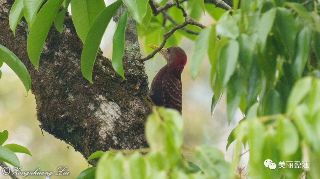 继续往上走,鸟浪时有出现,无论是机敏的黄绿鹎凤头雀嘴鹎,优雅的卷尾,好动的柳莺鹟莺,沉稳的铜蓝鹟方尾鹟,最后都被黄颈凤鹛给”置换“了,随之而来的还有它橡皮玩具一般的标志性叫声。来到2000米左右,鸟浪的核心已经成了绿喉太阳鸟和灰喉柳莺等较高海拔鸟类。一串洪亮的啄木鸟叫声传来——我已经在四川调查时听了不知道多少次,毫无疑问的,黄嘴栗啄木鸟!我们随后也看到了它的真身。拐了几个弯,云南雀鹛、褐胁雀鹛和栗头雀鹛也现身了。短短几小时,我们已经对长地方水库鸟类群落复杂的垂直结构有了深刻的体验,这真是一块宝地啊。将近12点时,山上的栗臀?还是没有换成白尾?,看来会缺几个高海拔鸟了。鉴于时间有限,我们还是决定离开长地方水库,前往大盈江。汽车正要离开,鸦老师一眼又看到了一只红尾水鸲。下到低海拔,手机信号也回来了,上传完毕后,鸟种数已经超过了88种。