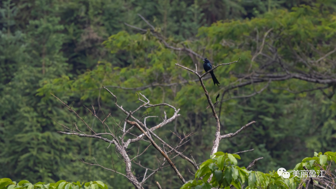 但他最神奇的是,一边开车一边能看到各种角度稀奇古怪站位的鸟。我们乘着小车,呼啸在盘山公路间,排哥突然刹车了,因为他发现在我们的左后方离我们直线距离约70米的树尖尖上,站了一只大盘尾,这只是他的壮举之一。