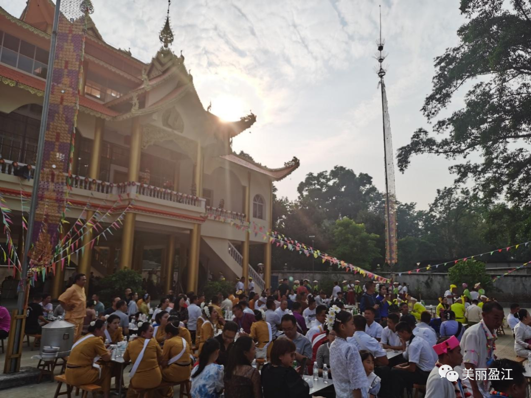 来,让我们把目光迅速转移到欢度泼水节的现场,傣族、德昂族居民穿着各自的民族服饰欢度佳节,那叫个人头攒动、锣鼓喧天。各位女士戴着五颜六色的圆锥体竹编帽子,各种盘发上插着鲜花或绢花簪子,可以说虽然未去云南花市,却已身在百花之中。