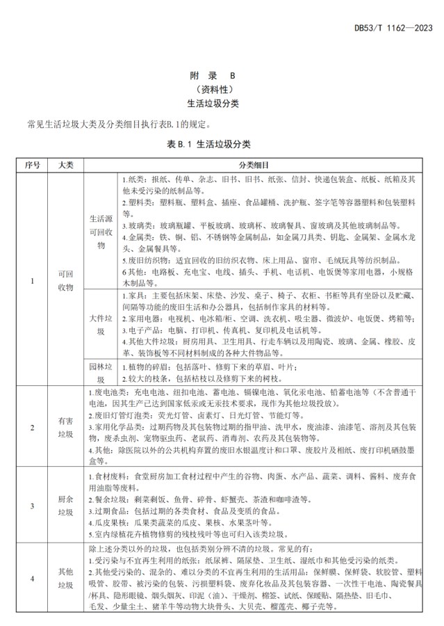 公共机构生活垃圾按照可回收物(含生活源可回收物、园林垃圾、大件垃圾)、有害垃圾、厨余垃圾、其他垃圾进行分类,生活垃圾分类细目可参考下表。