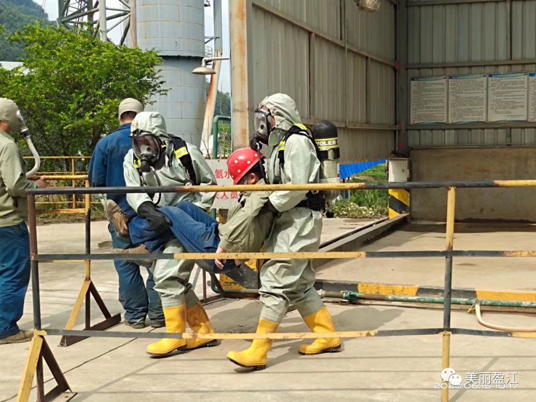 本次应急演练模拟了企业氨罐阀门或氨水泵堵塞,人员现场维修,因操作失误导致氨水泄漏的事件情景。演练中,各部门按照应急预案要求各司其职,现场警戒及秩序维护,确保无关人员远离事故现场;对周边的管道、沟、洞进行封堵,防止次生灾害影响;对可能受影响的居民和单位进行排查、预警,对事故原因开展调查,排查安全隐患;对厂界大气进行现场取样,开展应急监测;同时做好受伤人员的救治工作。
