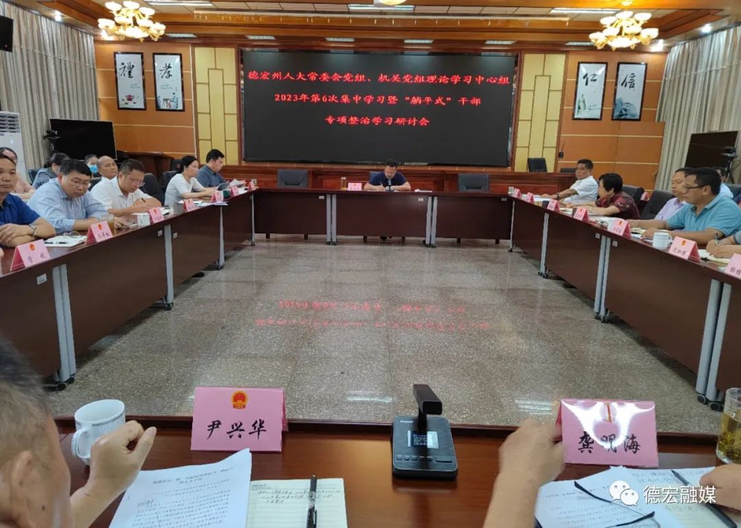 7月4日,州人大常委会召开党组、机关党组2023年理论学习中心组第6次集中学习暨“躺平式”干部专项整治学习研讨会,深入学习领会习近平新时代中国特色社会主义思想,紧紧围绕主题教育“学思想、强党性、重实践、建新功”的总要求,对机关“躺平式”干部开展拉网排查、专项整治,着力解决不愿担当、不敢担当、不善担当等问题。