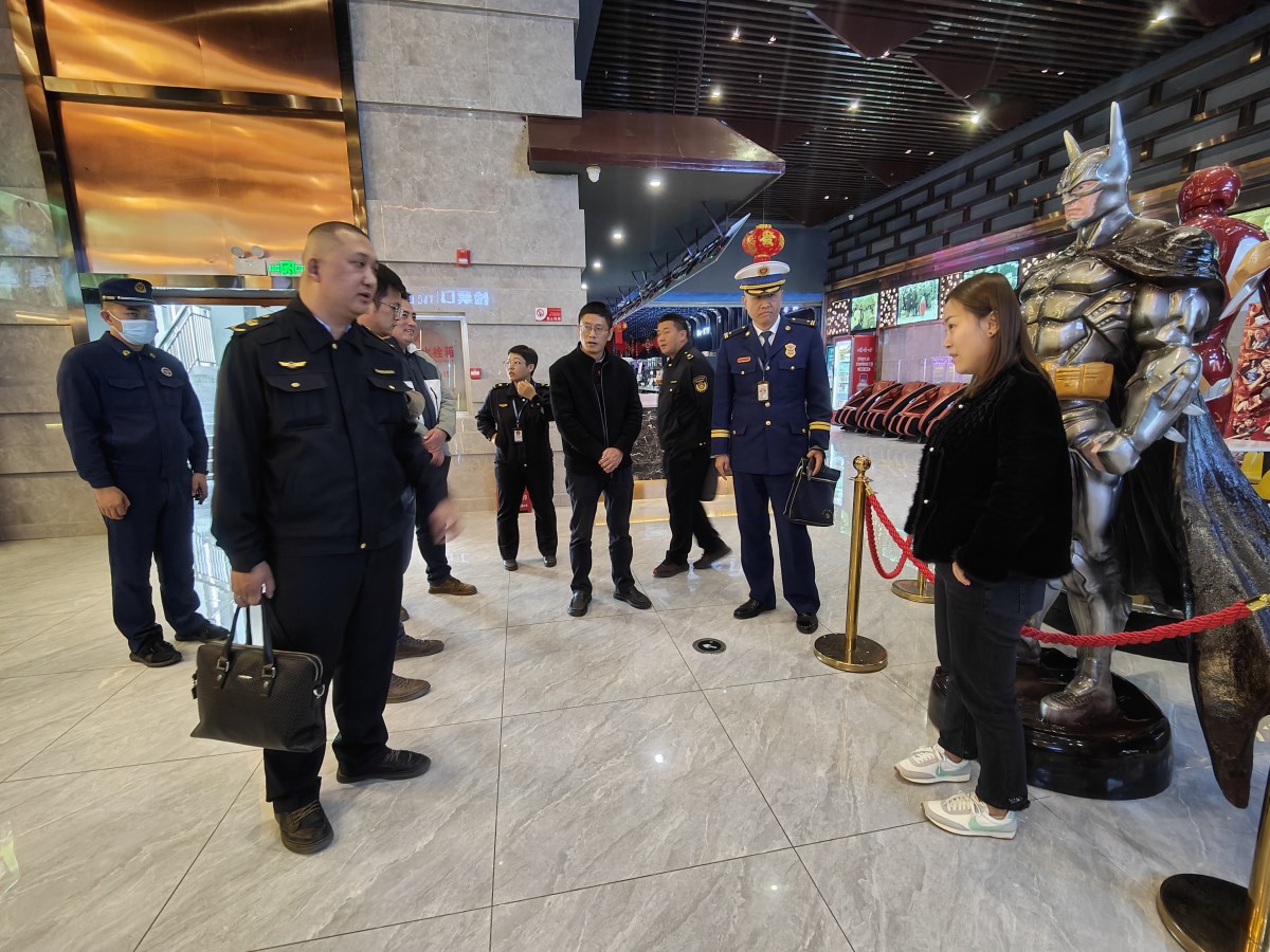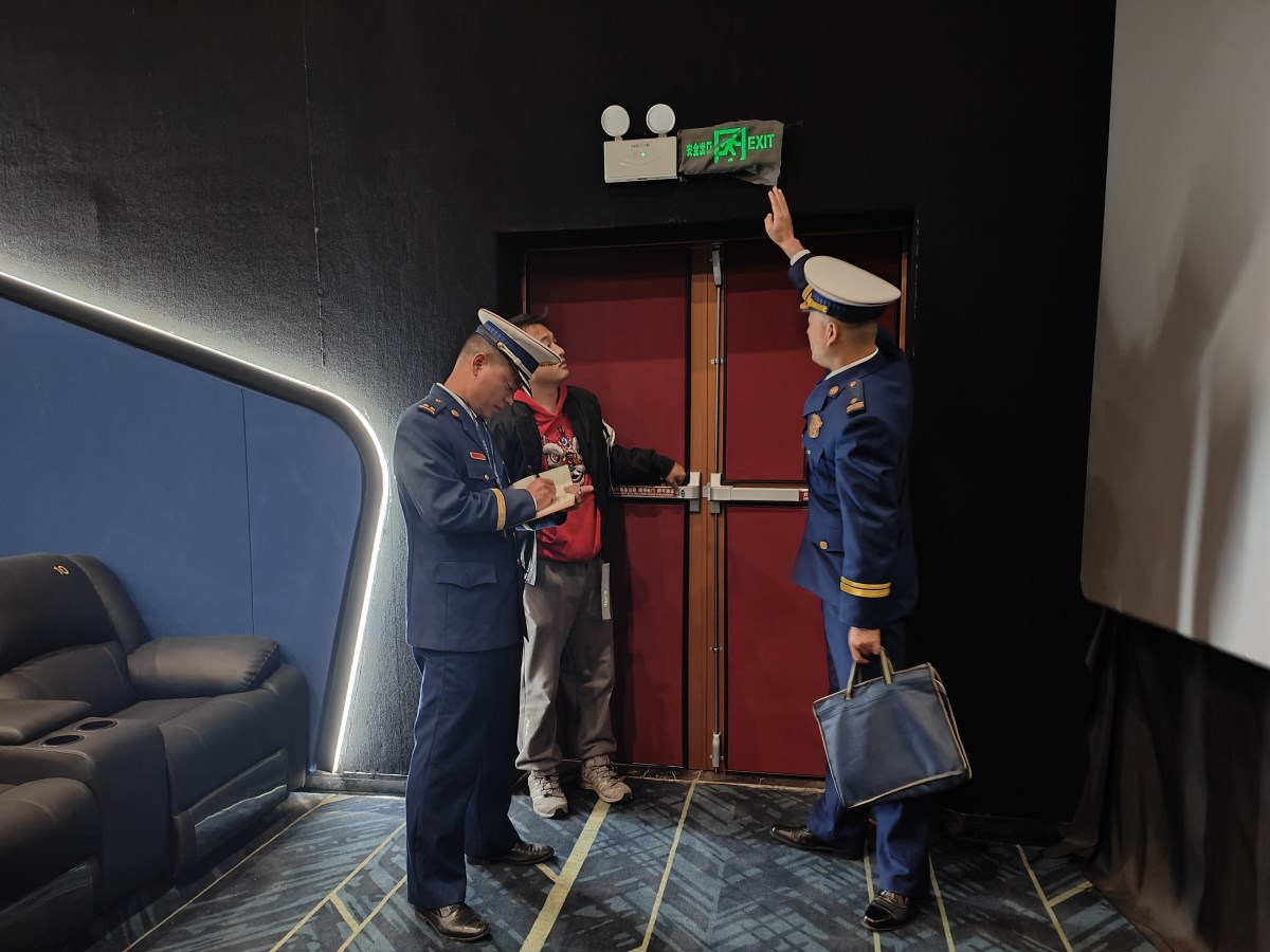 检查组一行先后来到辖区内电影院、网吧、培训机构、书店,重点检查是否严格履行《中华人民共和国消防法》规定的消防安全责任,安全出口是否通畅,消防设施是否存在故障、损坏,各类疏散指示标识、应急照明灯是否完好,有无乱拉电线或线路超负荷现象等情况,并对管理人员能否熟练使用灭火器等进行抽查。