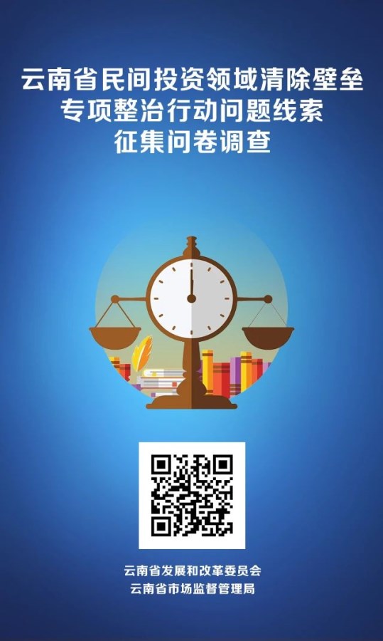 为贯彻落实党中央关于持续推进整治形式主义为基层减负的决策部署,破除对民间投资主体设置显性或隐性歧视条款的问题,现征集各类针对民间投资主体设置障碍的问题线索。若认为相关行为属于下列情形之一的,可以通过后附调查问卷二维码填写反映相关问题线索。