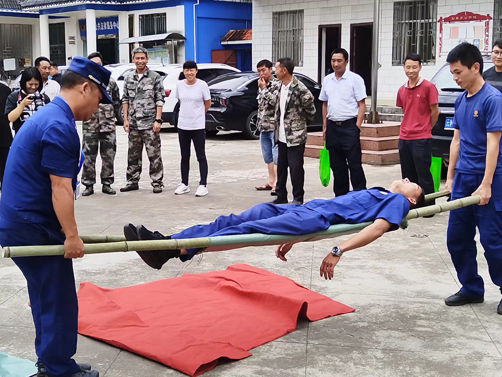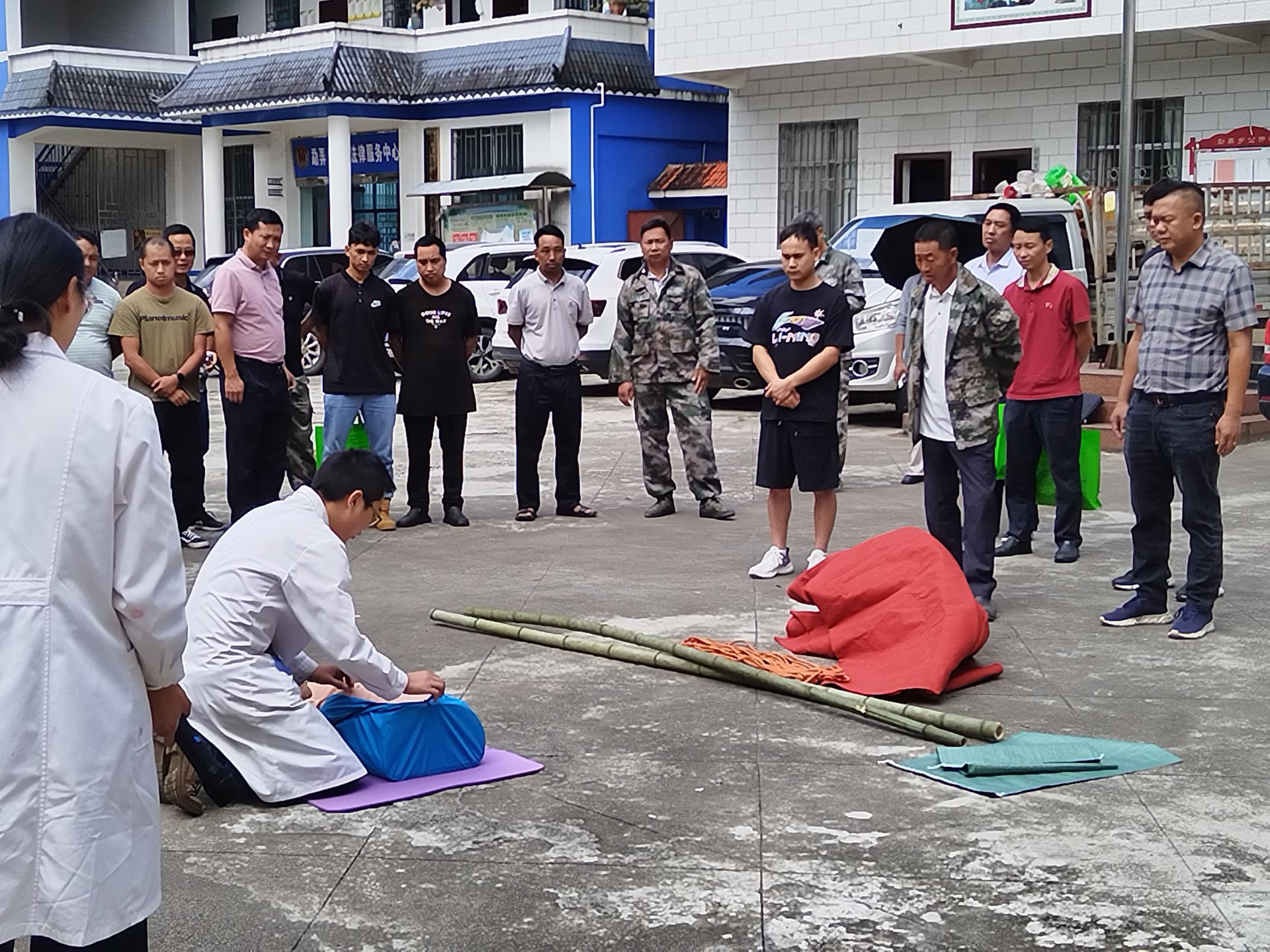 培训会上,武显斌局长传达了习近平总书记对防汛抗旱工作作出的重要指示及省、州、县主要领导近期防汛抗旱批示精神,并对抓紧抓实抓细抓好汛期防灾避险工作提出了具体要求。盈江县防震减灾局作了《坚持以防为主 做好地震灾害风险防治工作》《地震应急“第一响应人”》两个专题授课。县卫生健康局勐弄乡卫生院医生作伤员包扎、心肺复苏等技能培训。县消防救援大队教官作担架制作、结绳、伤员搬运等技能培训。培训结束,全体与会人员及部分群众在勐弄村小街村民小组参加了盈江县2024年乡镇地震应急实战演练,用群众听得懂、看得见、用得到、学得会的培训方式,确保地震应急“第一响应人”培训走深走实。