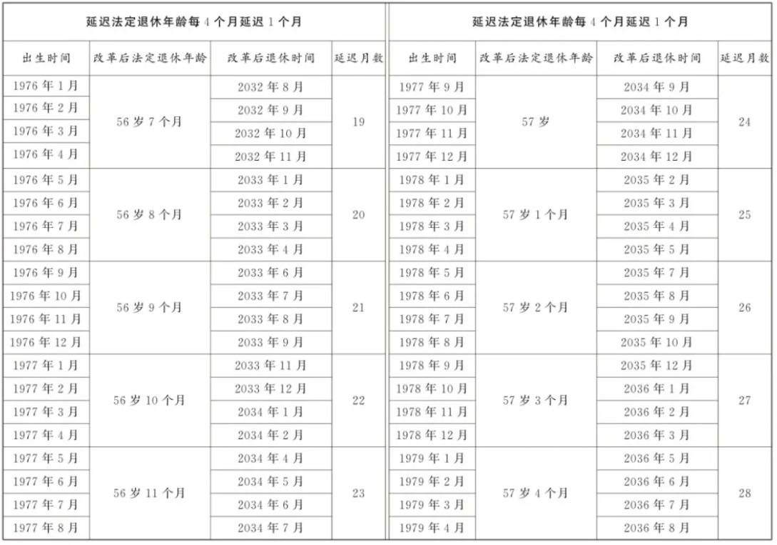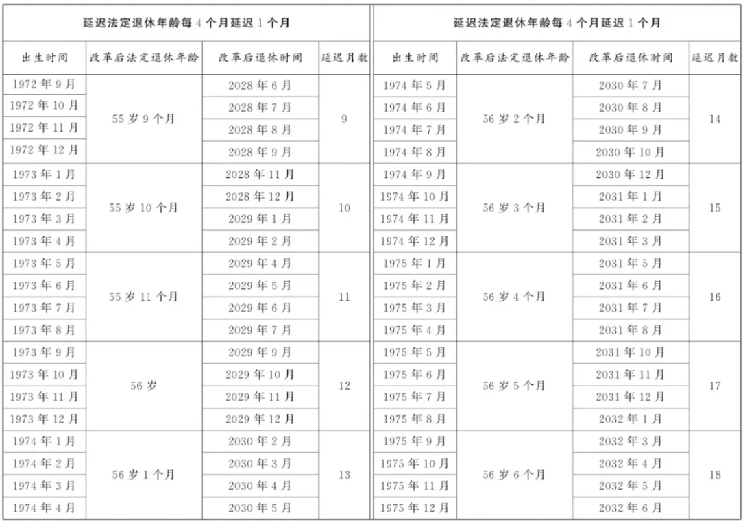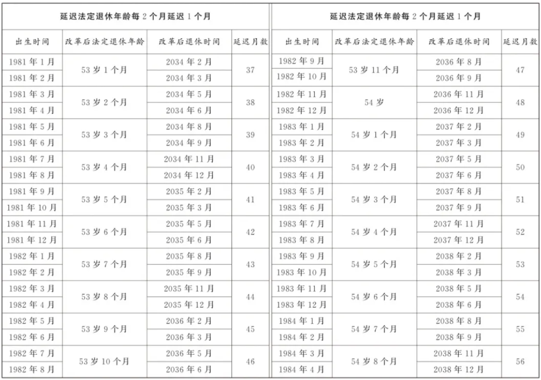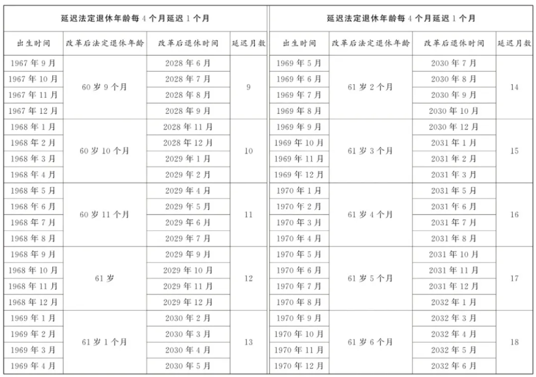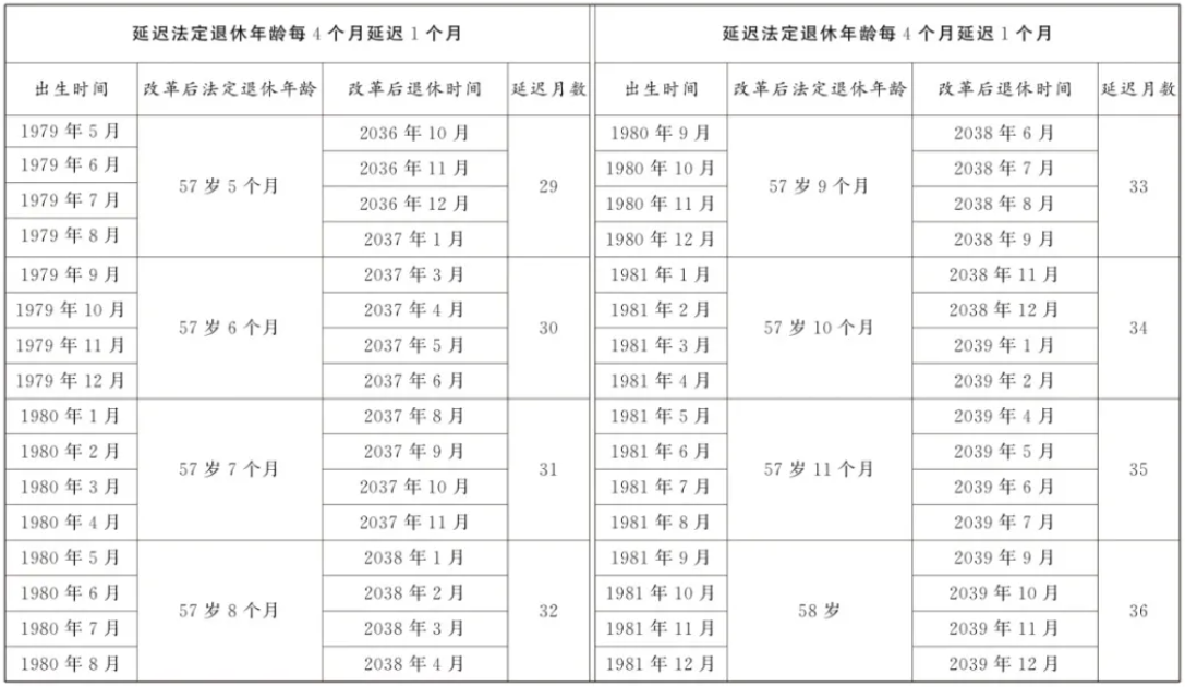9月13日,全国人大常委会会议表决通过了关于实施渐进式延迟法定退休年龄的决定。根据决定,从2025年1月1日起,我国将用15年时间,逐步将男职工的法定退休年龄从原60周岁延迟到63周岁,将女职工的法定退休年龄从原50周岁、55周岁,分别延迟到55周岁、58周岁。