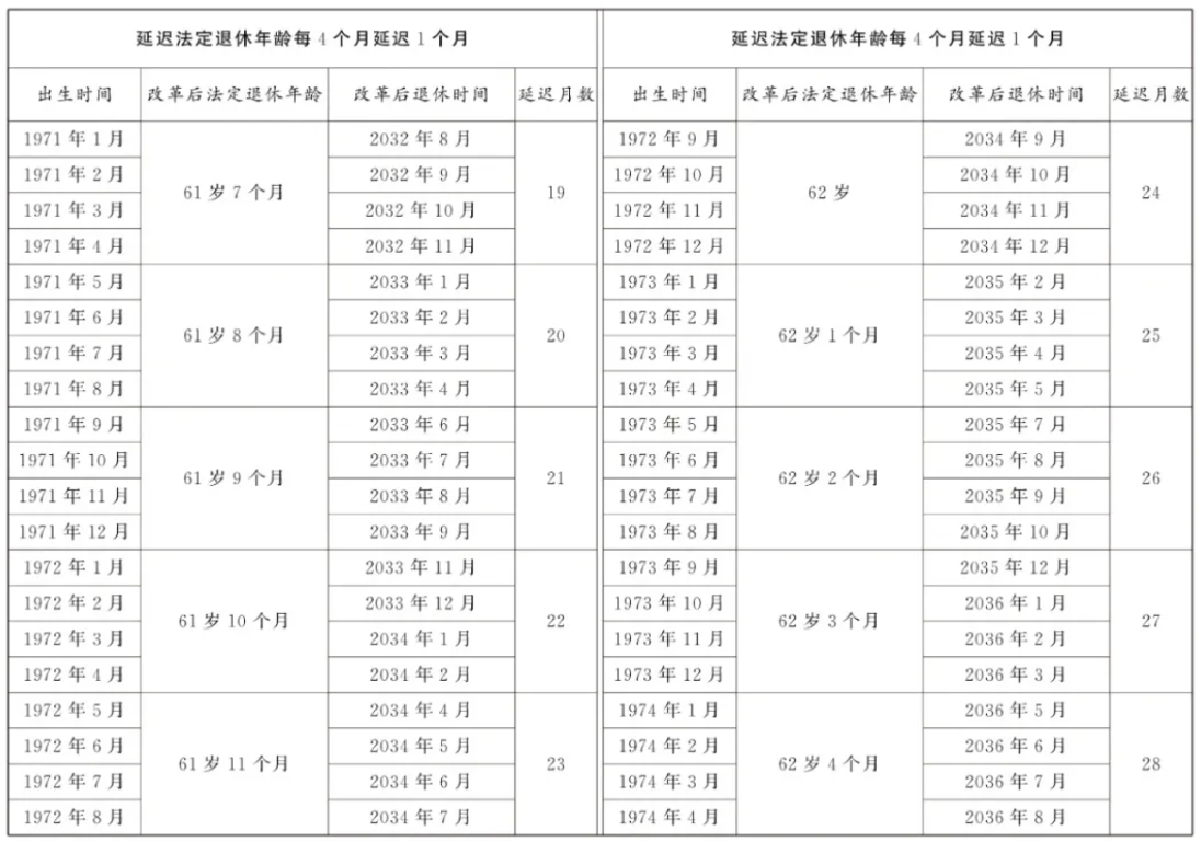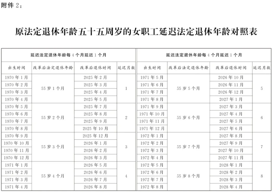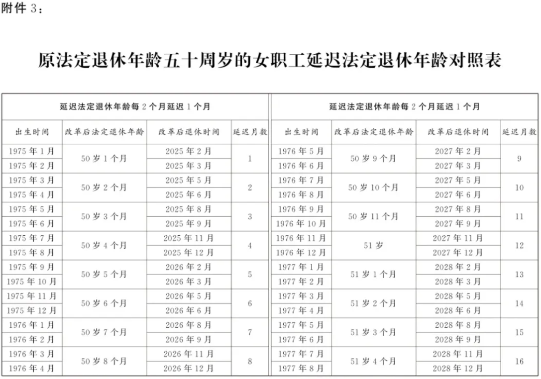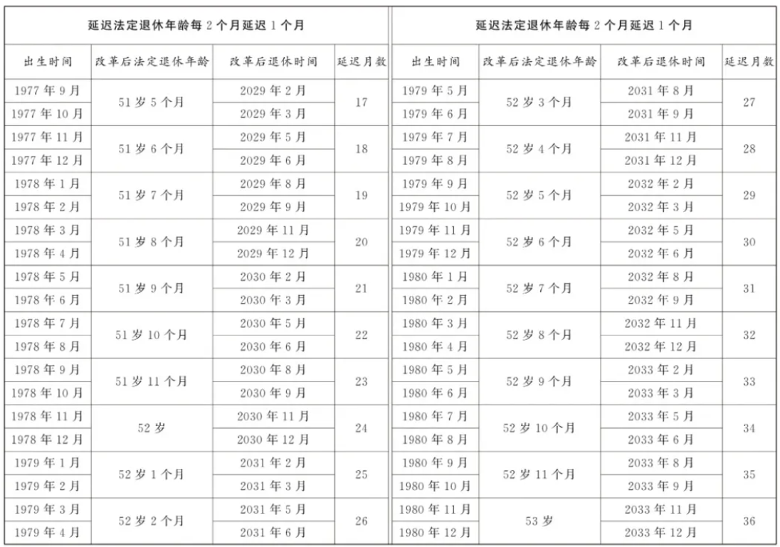 9月13日,全国人大常委会会议表决通过了关于实施渐进式延迟法定退休年龄的决定。根据决定,从2025年1月1日起,我国将用15年时间,逐步将男职工的法定退休年龄从原60周岁延迟到63周岁,将女职工的法定退休年龄从原50周岁、55周岁,分别延迟到55周岁、58周岁。